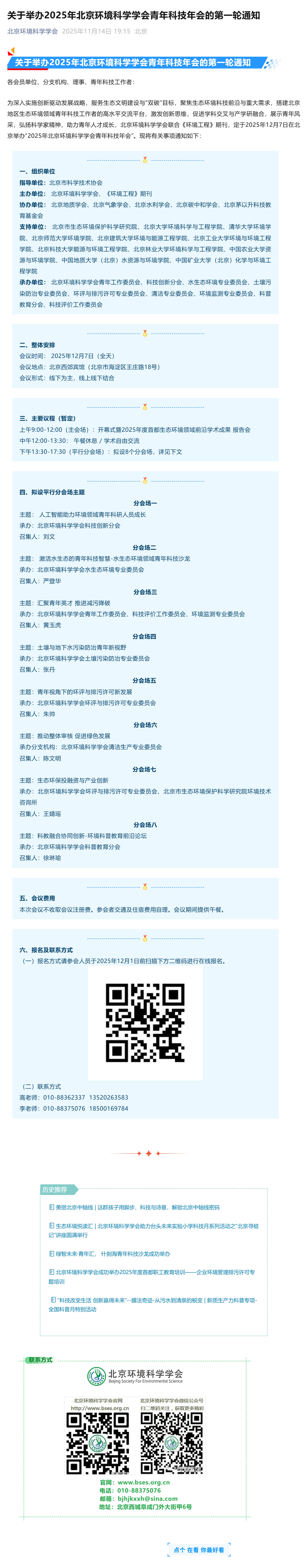 关于举办2025年北京环境科学学会青年科技年会的第一轮通知