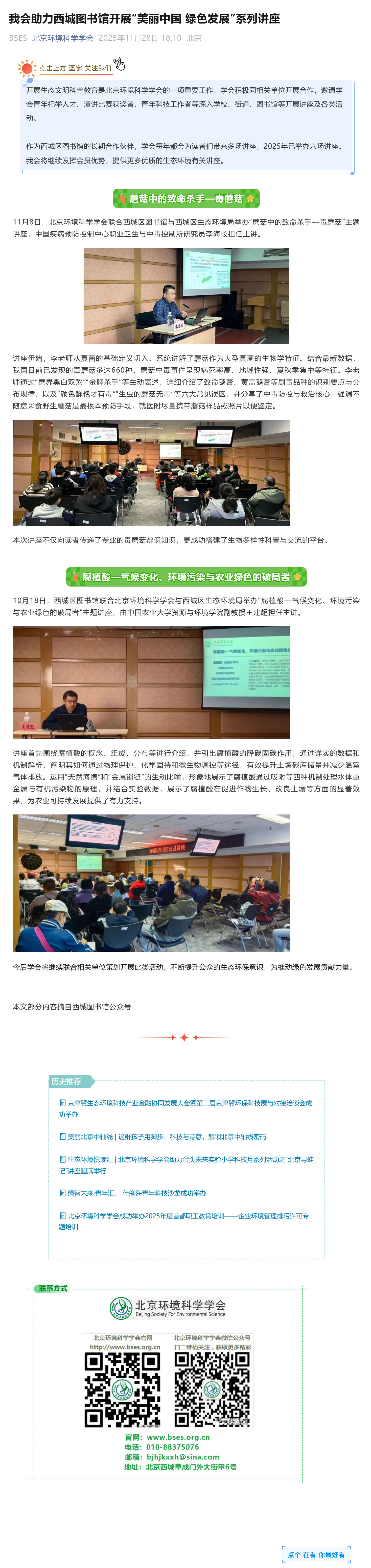 我会助力西城图书馆开展“美丽中国 绿色发展”系列讲座